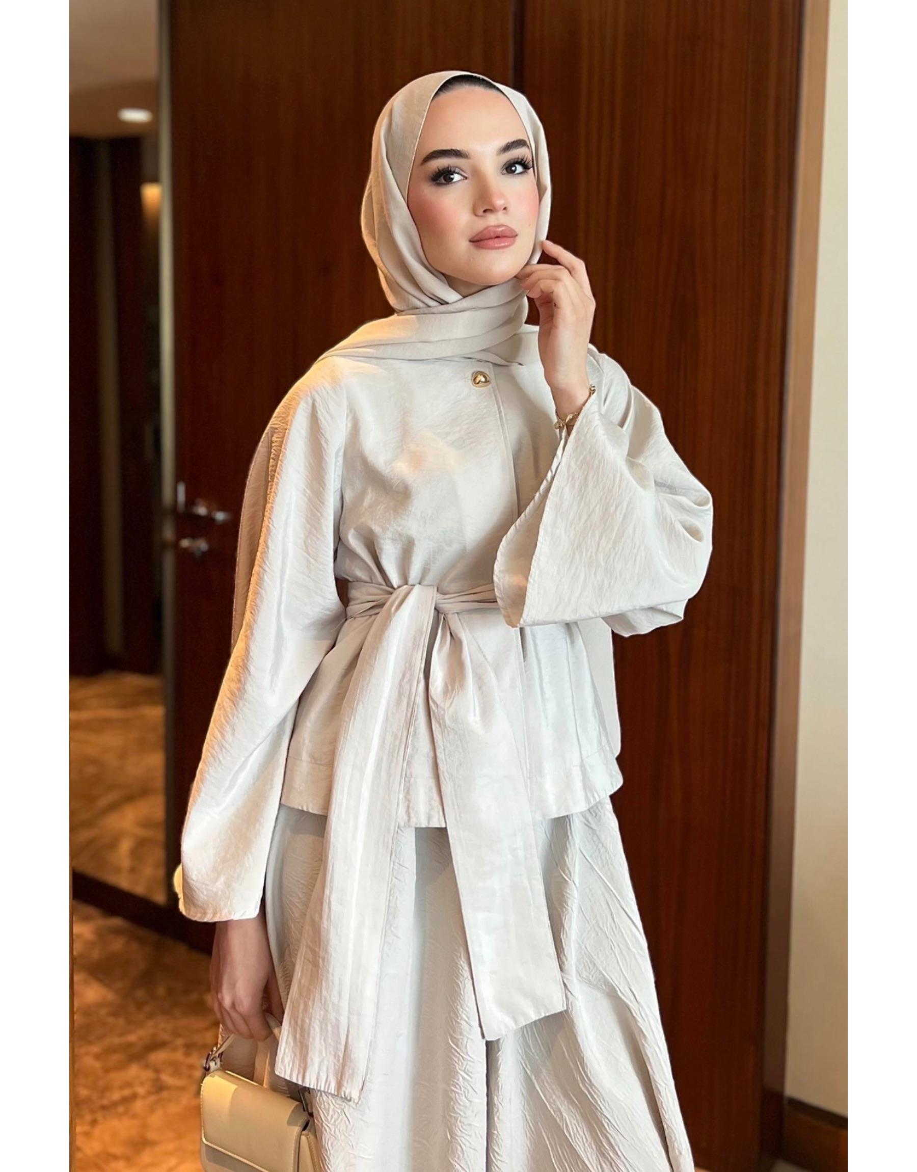 Ekru Şal Detaylı Ceketli Takım