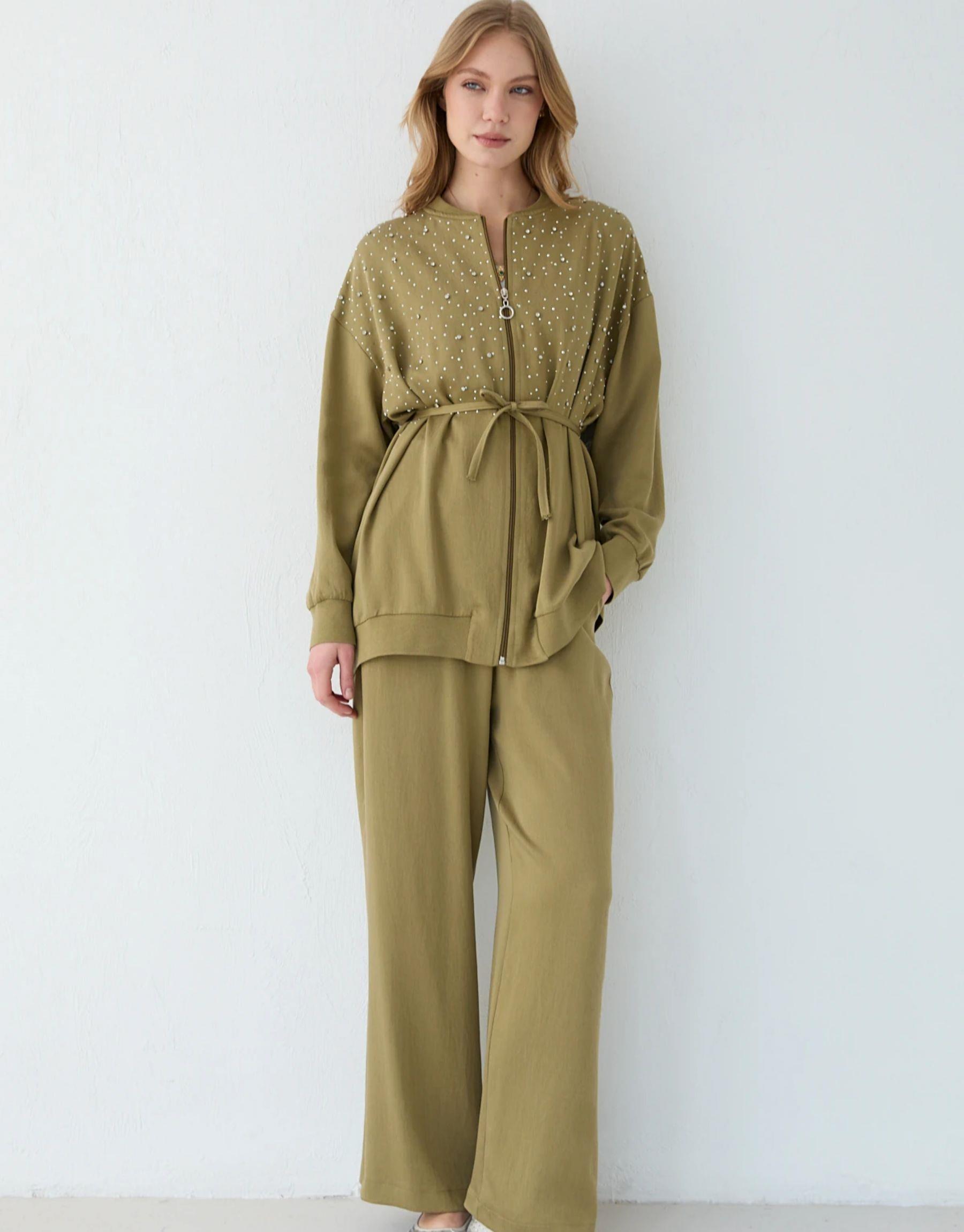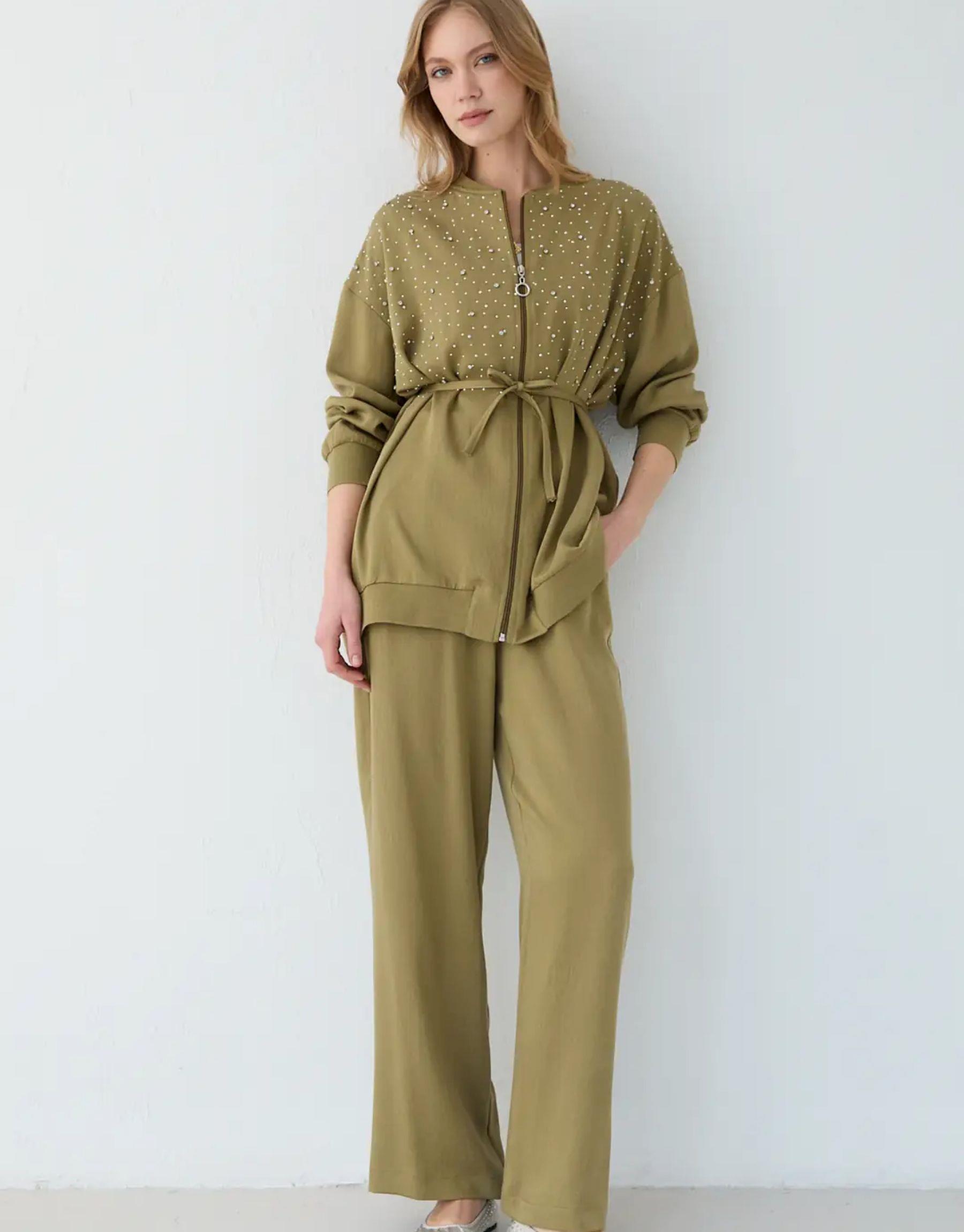 Bayan Taşlı Pantolonlu Takım |