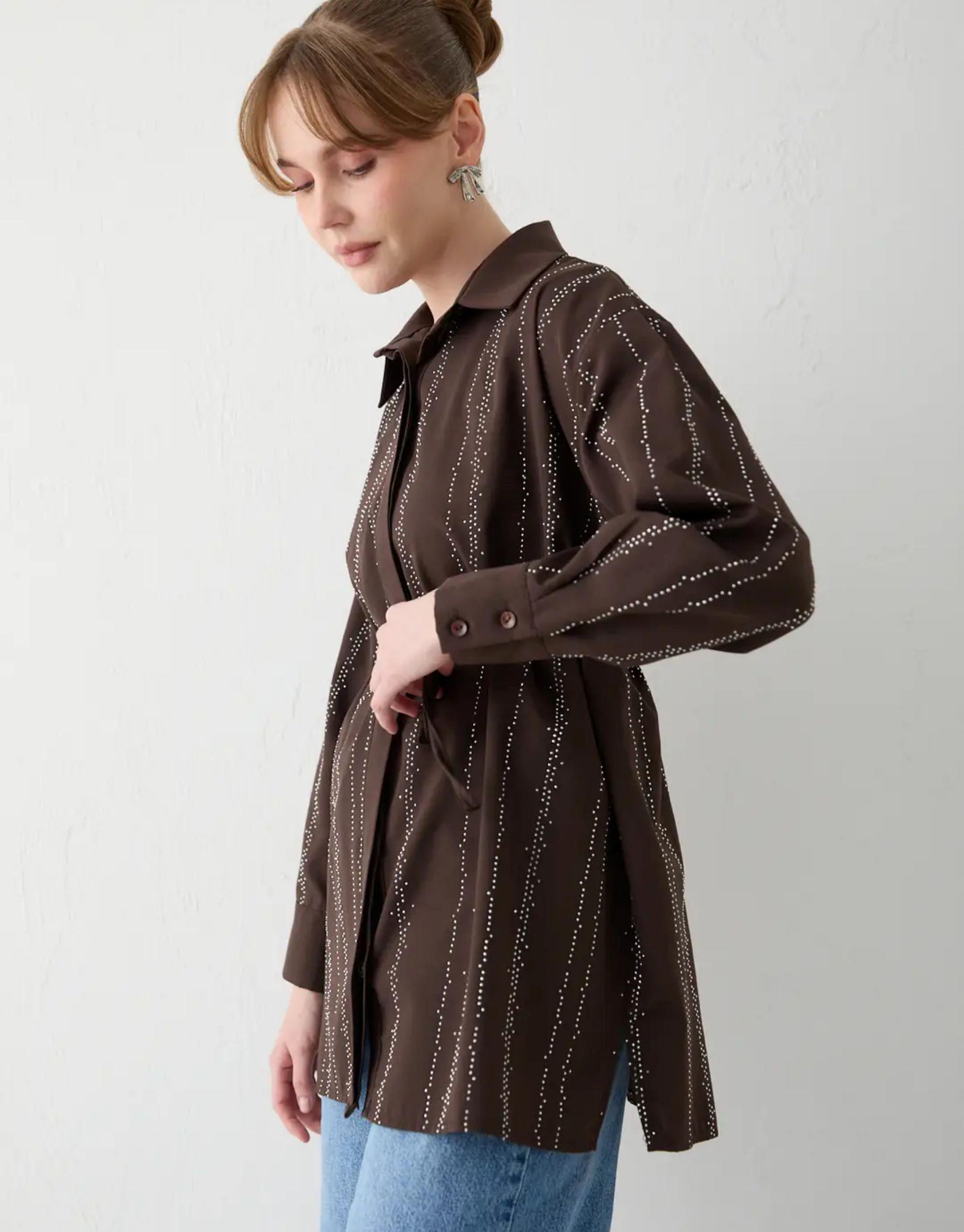 Kahve Kol Aksesuarlı Gömlek